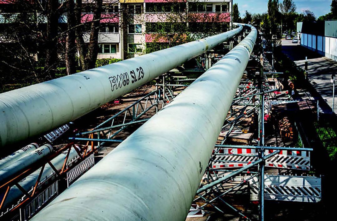 Die Stahlmantelrohrleitungen wurden in zwei parallelen Rohrsträngen über die komplette Länge von 295 m gemäß Richtlinie AGFW FW 410 vorgefertigt. Aufgrund der dichten Bebauung (Wohngebiet, Supermarktparkplatz, vielbefahrene Wendenschlossstraße), war es erforderlich, die Rohrstränge auf einer 5,50 m über Gelände liegenden, aufgeständerten Rollenbahn zu lagern. Auf einer Arbeitsblattform erfolgte die Montage und die 100%ige Durchstrahlungsprüfung der Medium- und Mantelrohrnähte sowie die Dicht- heitsprüfungen.